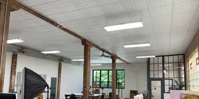 Manufactured from PVC, commercial customers turn to Genesis panels to avoid water damage, mold or mildew and other ceiling issues that are are routinely experienced in high-traffic, commercial projects. Because Genesis Ceiling Panels are guaranteed not to water-stain, swell or rot due to moisture, they’re the favorite ceiling tile for a wide range of commercial applications.