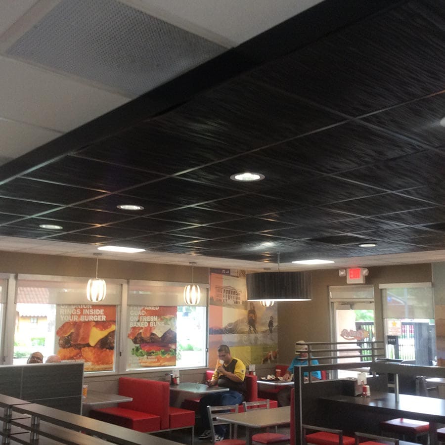 The goal of this store update was to invigorate and elevate the interior with a fresh look. Genesis Drifts in Black adds flair to the indoor dining area for a more upscale experience.